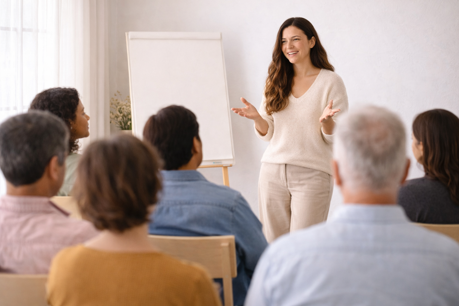 Aquí, la meditación no exige posturas forzadas ni experiencia previa. La práctica se realiza sentados, con apoyo adecuado, permitiendo que el cuerpo se relaje y que la atención pueda asentarse de forma natural. De esta manera, la meditación se vuelve accesible, sostenible y amable, incluso para quienes nunca han meditado antes.
